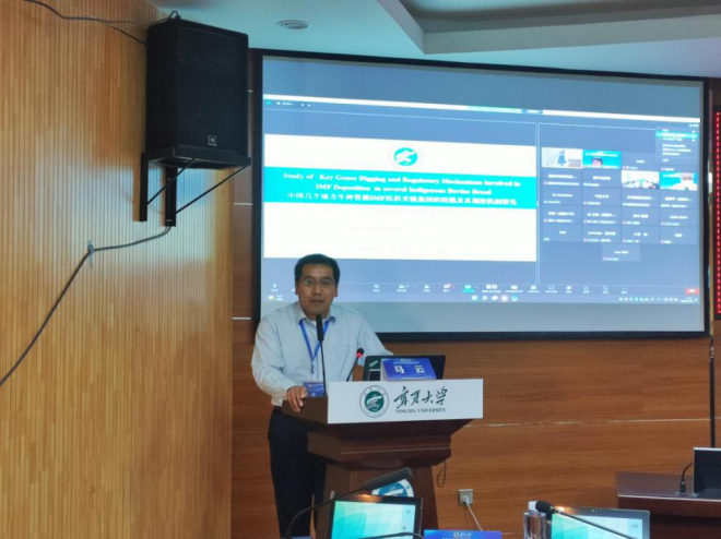 参加本次会议的有宁夏大学副校长史金龙、中日研究所中方顾问陈育宁、研究生院院长曹兵教授、日本岛根大学副校长大谷浩教授、国际联合研究所所长岛根大学一户俊义教授等47位专家及中日双方有关学院和单位师生共近100人。宁夏大学自治区反刍动物分子细胞育种重点实验室主任马云教授和畜牧学科马燕芬研究员等老师以及部分博硕士研究生参加了本次会议,马云教授应邀做了题为“中国几个地方牛种资源IMF沉积关键基因的挖掘及其调控机制研究”的主题报告。