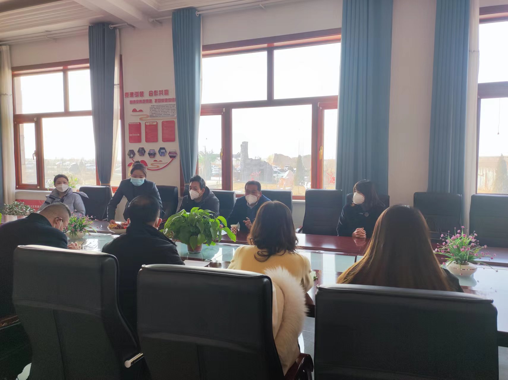 2023年1月4日,宁夏回族自治区反刍动物分子细胞育种重点实验室主任马云教授、马燕芬研究员、陶金忠教授、西北农林科技大学靳亚平教授、王勇胜教授带领部分研究生赴宁夏新澳农牧有限公司推动宁夏高产长寿良种奶牛的高效扩繁项目的合作事宜。