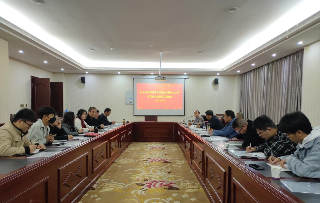 【包斌武/文,王晋鹏/图】2021年10月8日,宁夏回族自治区重点研发计划“肉牛良种高效繁育关键技术研究与应用”项目启动会暨项目推进会在宁夏固原瑞丰国际饭店会议室召开。会议由项目负责人宁夏大学王兴平教授主持,出席此次会议的人员有:项目咨询专家(固原市畜牧技术推广服务中心主任张国坪研究员、宁夏大学马云教授)、子课题负责人(西北农林科技大学雷安民教授团队的高志敏研究员、宁夏农林科学院动物科学研究所梁小军所长和宁夏大学杨易副教授)、项目合作单位固原富明农业科技发展有限公司总经理咸海龙,以及参与项目任务的科研骨干及研究生。