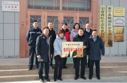 最后,王建宇副院长带领宁夏反刍动物分子细胞育种实验室部分教师代表在宁夏犇旺生态农业有限公司进行了“宁夏大学农学院教学科研实践基地”的揭牌仪式,落实了双方教学科研上的长期合作关系,犇旺生态农业有限公司成为宁夏大学农学院教学科研实践基地为宁夏大学农学院人才培养质量的提高,推动成果转化等提供了有一个重要的支撑平台。