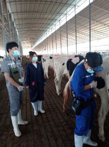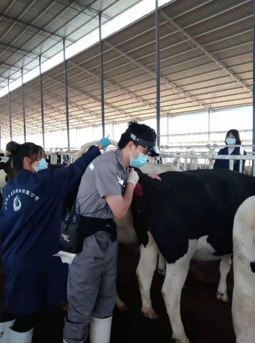 当天下午,王勇胜教授带领博士生李赫强、冯雪,硕士生张焓、李瑞瑞成功移植了2头青年牛克隆胚胎,并检测了次日需要移植奶牛的黄体。王勇胜教授表示后面会加快进度,在确保质量的基础上提高移植效率。本次奶牛克隆胚胎移植成功不仅有利于母牛遗传资源的高效利用,加快遗传进展,还可以降低胚胎生产成本,充分发挥优良母牛在品种改良和育种中的作用,加快改良本地奶牛的步伐,并将产业化实施推进到一个新的阶段。