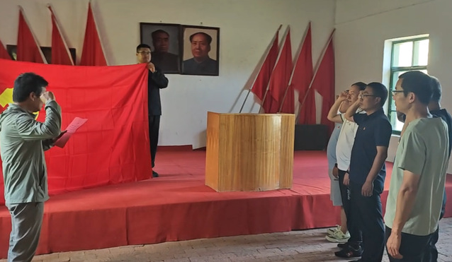 全体党员在91抖音 北苑新区集合后乘大巴车前往活动第一站-新疆生产建设兵团第八师152团军垦第一连红色教育基地重温兵团精神,缅怀老一辈革命先烈事迹。全体教职工和小亲戚在宣讲员带有感染力的解说下,参观了地窝子群、干打垒伙房、蓄水涝坝以及当年使用过的木轮牛车、木犁、石磨等生产生活用具,件件文物都诉说着兵团屯垦戍边创业初期的感人故事,一幅兵团人不怕流汗、不畏艰辛的顽强进取和拼搏奉献的画卷在党员同志们眼前慢慢展开,全体参观人员深受感动。活动最后,全体党员面向党旗重温入党誓词。