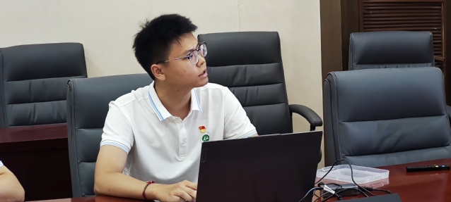 图3 中国农业大学山东东营电力助农科技小院何雄林博士介绍科技小院建设情况