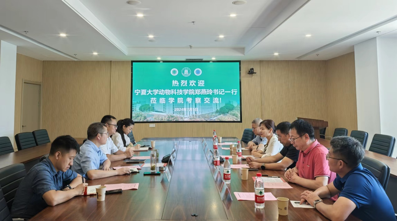 2024年7月5日,宁夏大学动物科技学院党总支书记郑燕玲、副院长(主持工作)马云、副书记兼副院长李继东、动物医学系教授许立华、动物医学系系主任龚振兴、动物医学系教师冯敏一行前往华中农业大学动物科学技术学院动物医学院交流座谈。华中农业大学动科动医学院党委书记刘兴斌、副院长胡丽华、人才培养办公室主任刘嘉、研究生辅导员陈泊宁参加了本次座谈会。