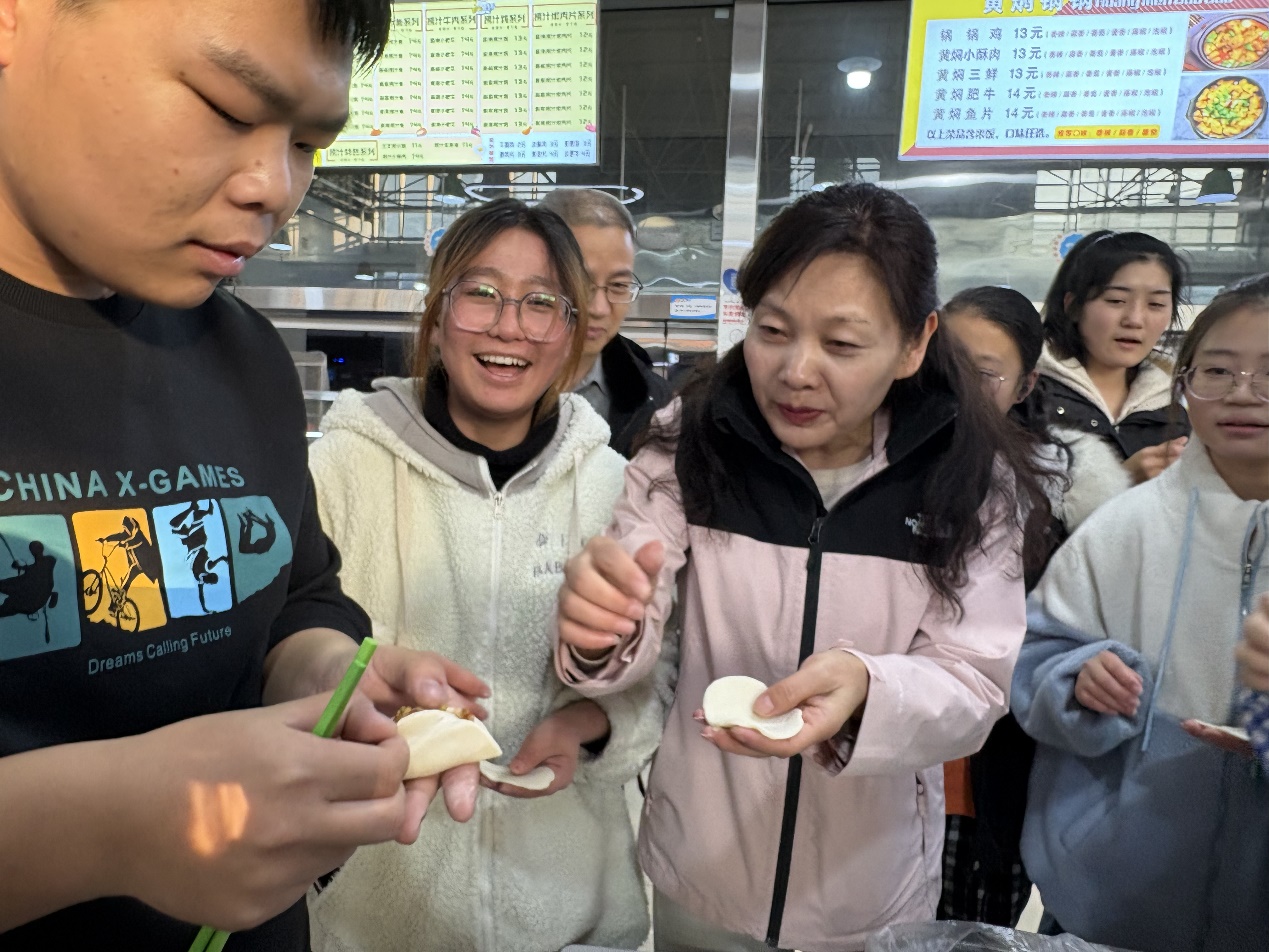 活动在贺兰山校区兰馨苑食堂拉开帷幕。学院领导和书院领导亲临现场,与同学们一起动手包饺子、聊家常,现场气氛其乐融融。领导们详细了解了同学们的学习与生活情况,并亲手示范包饺子的技巧,师生互动温馨而愉快。