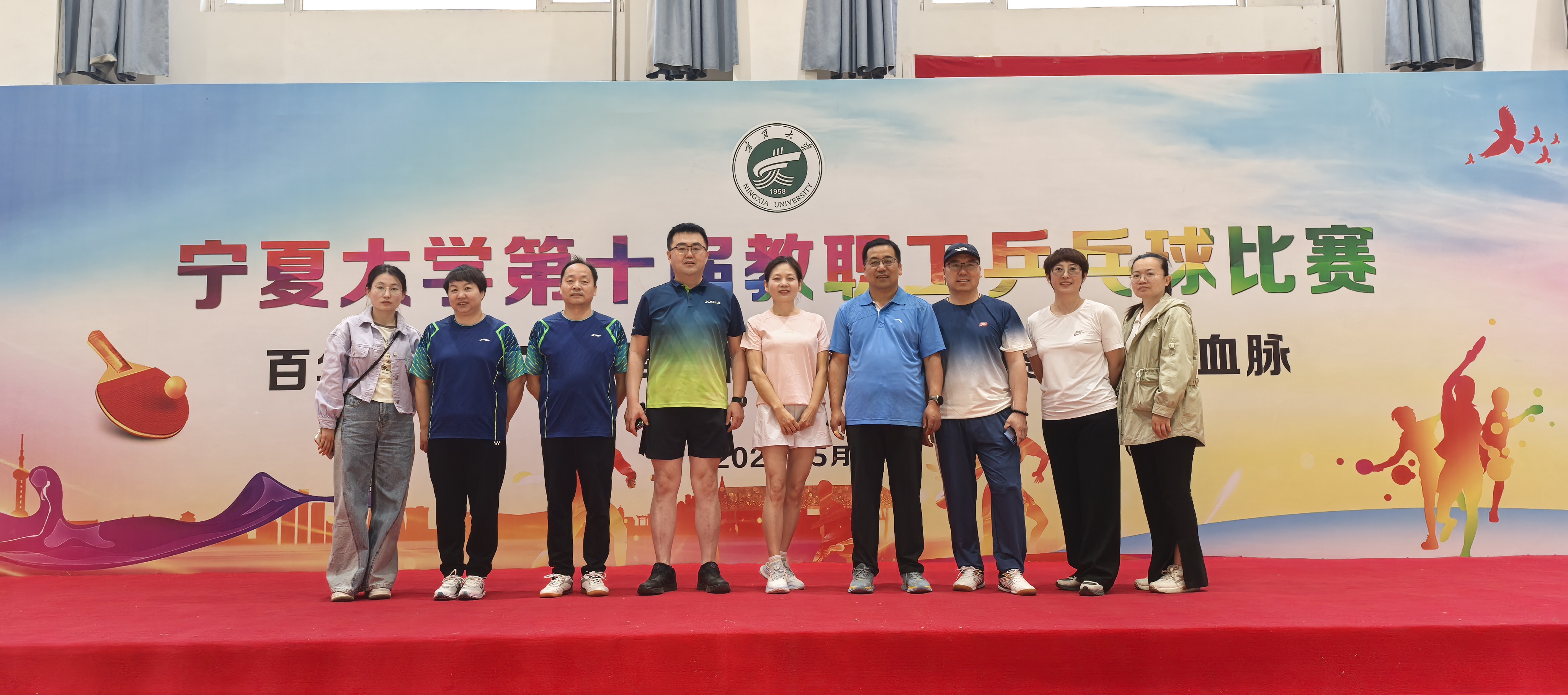 五月是一个充满希望和活力的季节,宁夏大学第十届教职工乒乓球比赛在学校体育馆激情开赛。本次比赛设团体赛与个人单打两大项目,吸引了全校37支代表队参与角逐。我院也选派出了以郑燕玲书记、马云副院长、张桂杰教授、王兴平教授、张娟教授、张珠明教授和罗仍卓么副教授为核心的主力阵容。学院分工会的张红瑞老师也组织了以龚振兴老师、郭延生老师以及王爽等老师为代表的拉拉队呐喊助威。
