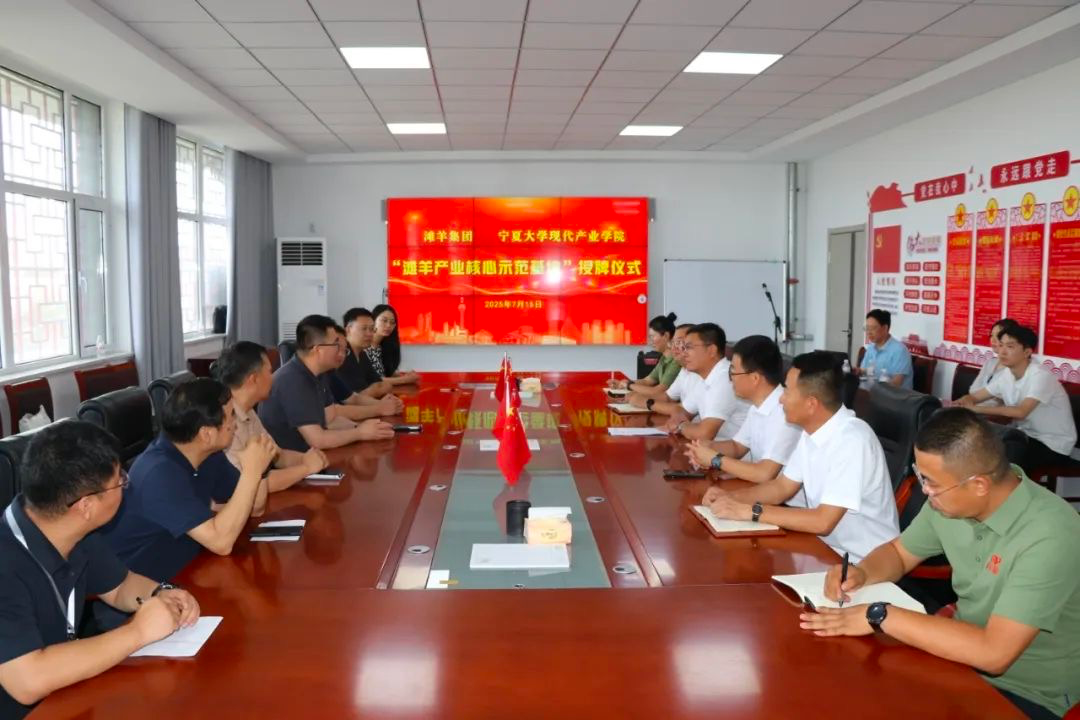 “宁夏大学滩羊现代产业学院”是由宁夏大学与宁夏盐池滩羊产业发展有限公司联合创办,双方将依托示范基地,围绕滩羊遗传育种、智慧养殖、产品溯源等关键领域开展联合攻关,同时共建实训平台,探索“课堂+牧场+实验室”的人才培养模式。