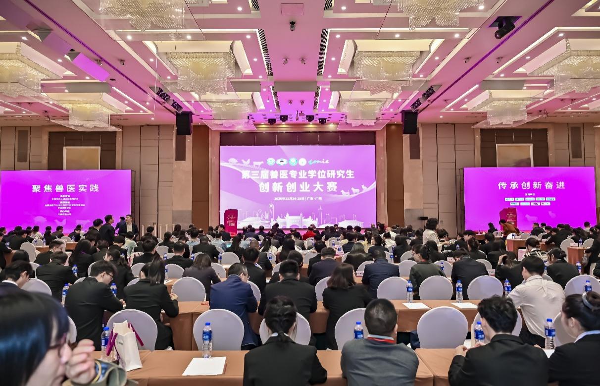 2025年11月26日,第三届全国兽医专业学位研究生创新创业大赛决赛在广州圆满落幕。本次大赛由中国学位与研究生教育学会主办,全国兽医专业学位研究生教育指导委员会、中国兽医协会专家工作委员会提供学术指导,华南农业大学承办。大赛以"聚焦兽医实践,传承创新奋进"为主题,吸引了来自全国50所高校和科研单位的60支队伍、600余名师生参与决赛角逐。