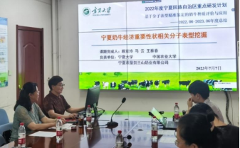 2023年7月7日,自治区重点研发项目“基于分子表型精准鉴定的奶牛种质评价与应用”年度总结会在宁夏大学德晖楼103会议室顺利召开。项目负责人中国农业大学王雅春教授、来自宁夏大学、自治区畜牧站、中国农业大学以及项目基地宁夏农垦集团乳业公司的项目课题负责人、项目骨干共24人参加了会议。